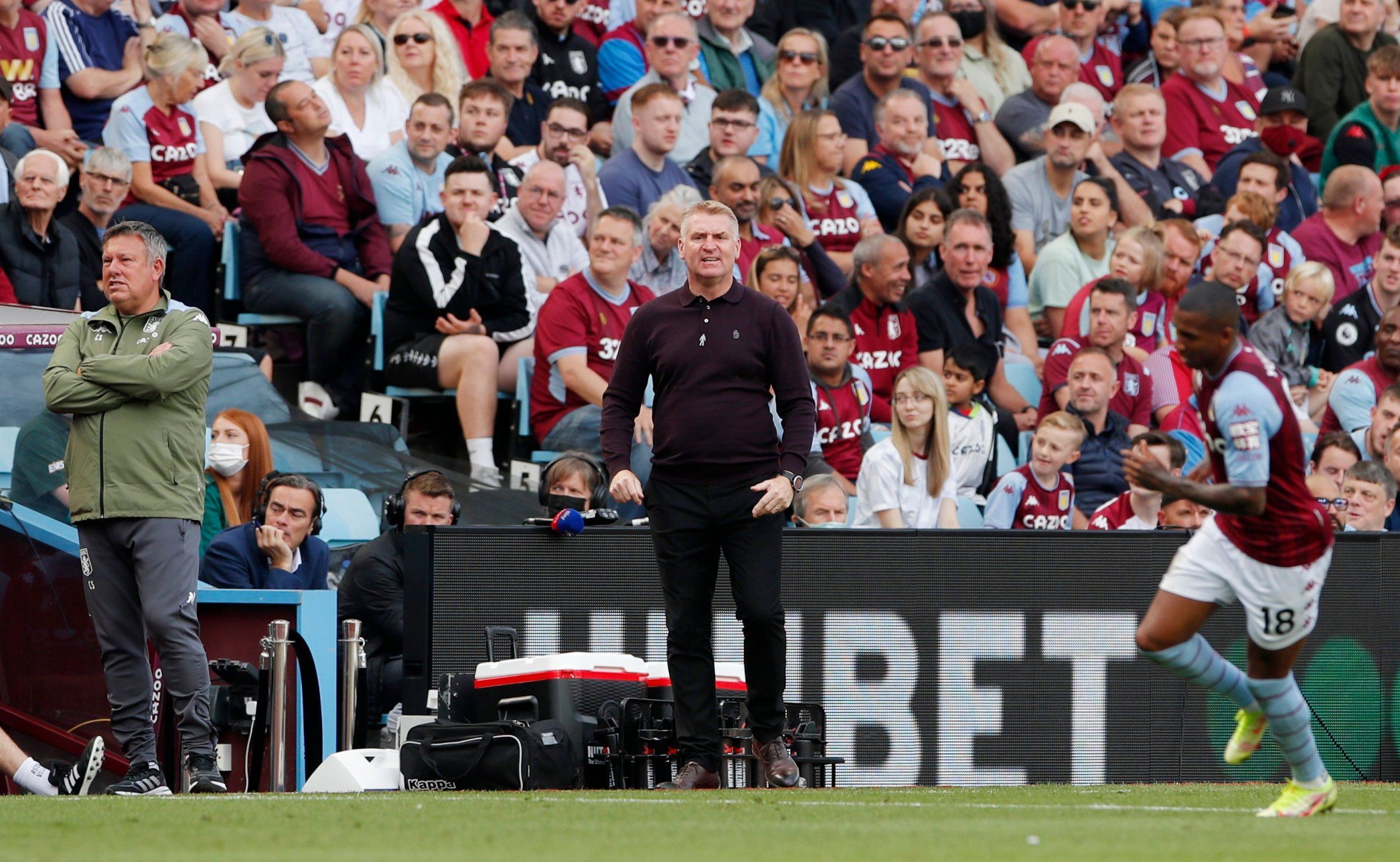 If Smith opts to go back to his tried-and-trusted system of a four-man defence, that could see Axel Tuanzebe being the man to drop out, with last season’s reliable contingent of Matty Cash, Ezri Konsa, Tyrone Mings and Matt Targett taking their places.